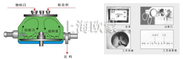 1、攪拌槳對(duì)物料干混,加粘合劑后濕混。能根據(jù)物料和粘合劑的特性使攪拌槳的旋轉(zhuǎn)速度確保運(yùn)動(dòng)產(chǎn)生渦流,物料充分混合。同時(shí),制粒刀處交匯區(qū)域?qū)Ψv的物料團(tuán)充分打碎成顆粒;